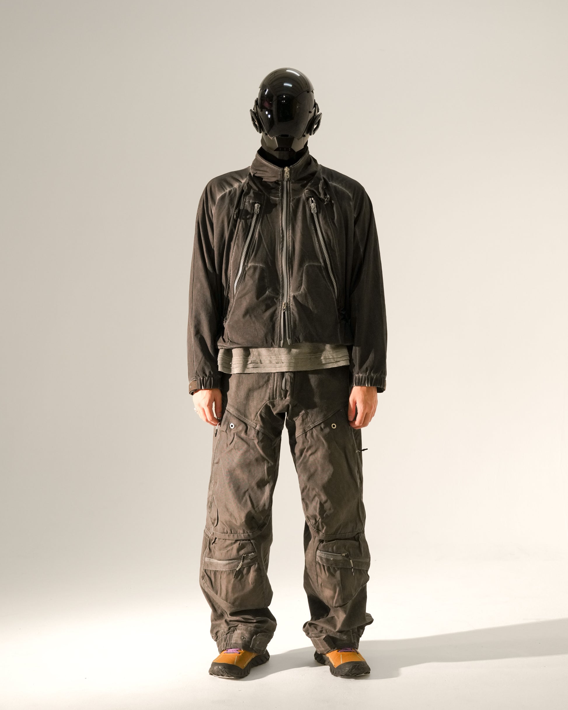 Double-Layer Multi-Pocket Distressed Batik Jacket