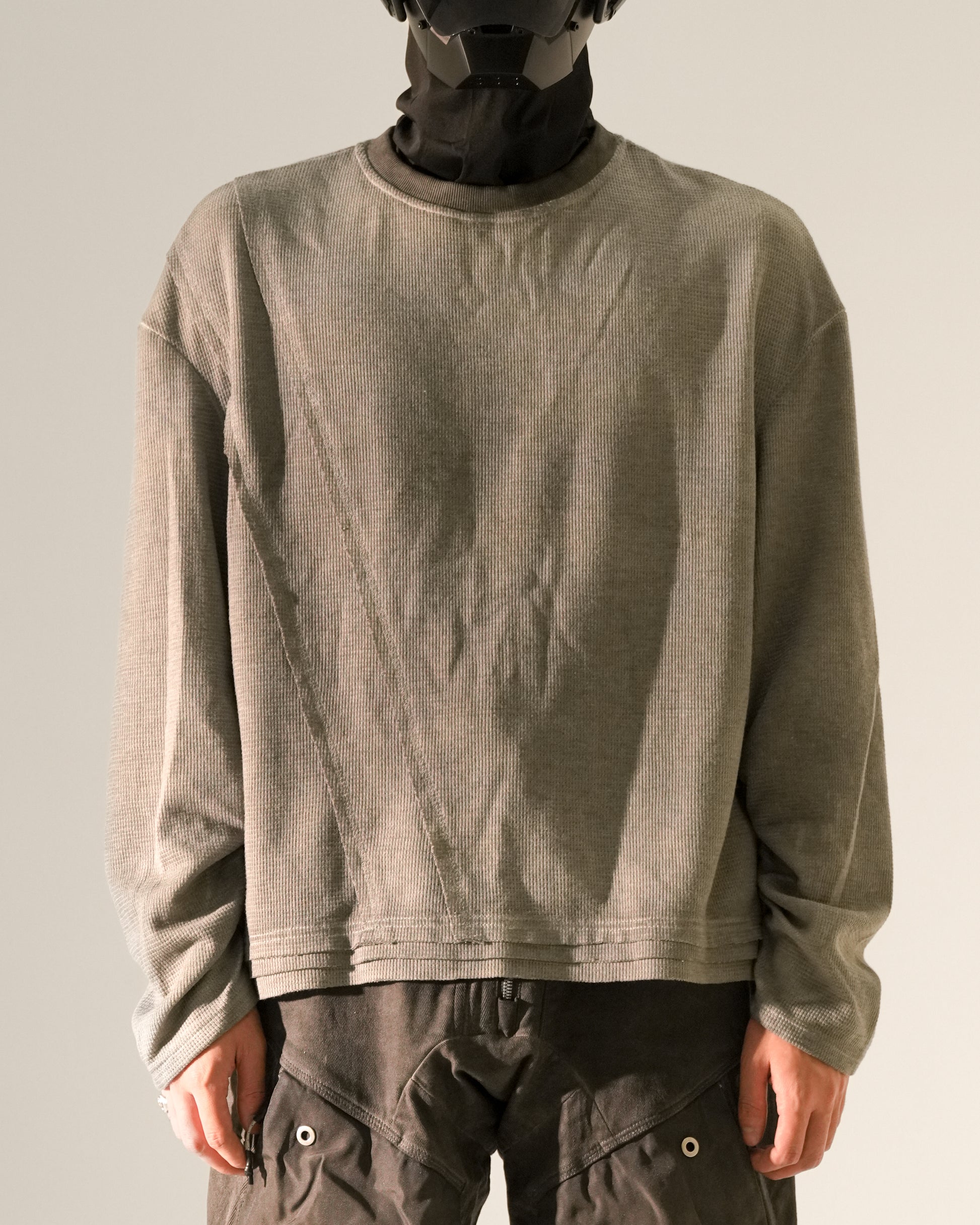 独特なカーブライン構造と、コールドダイによるムラ感が際立つロングスリーブTシャツ。