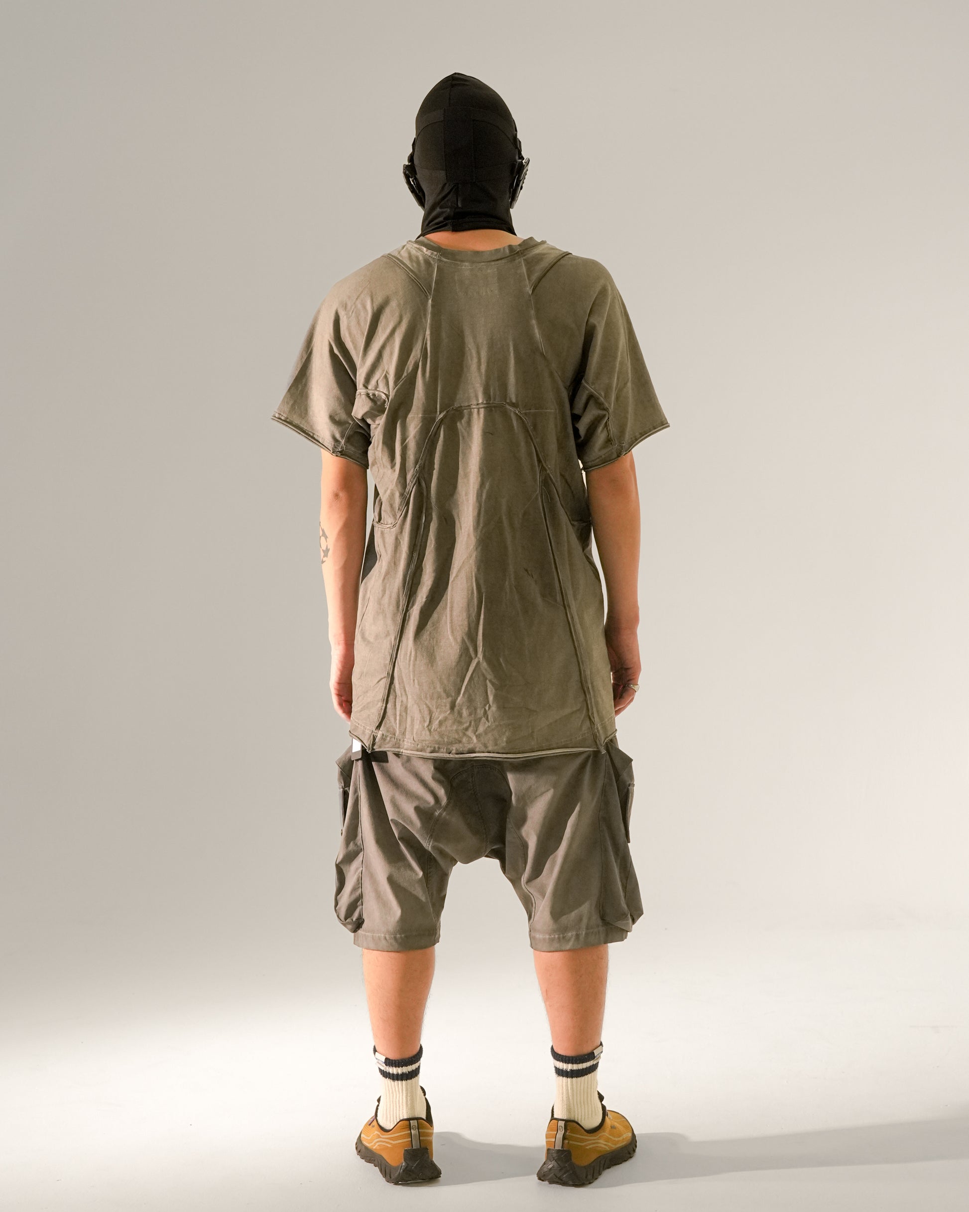 カーブラインの切り替え構造が特徴的なショートスリーブTシャツ。